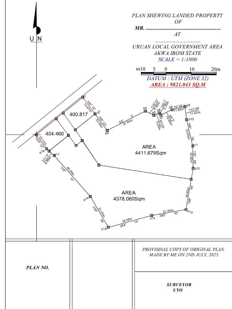 *Land for Sale* 9821sqm bare land on Nwaniba Road, before Five Star Hotel, Akwa Ibom State. Price: ₦30M Can be split into two parcels at ₦15M each.